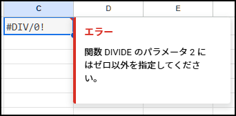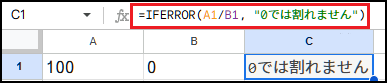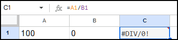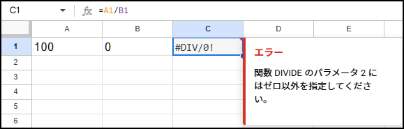 この場合、C1 に #DIV/0! エラーが表示されます。