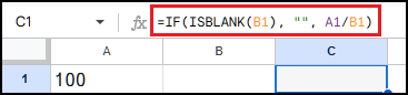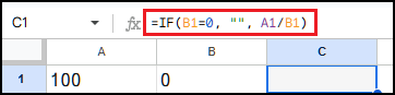 =IF(ISBLANK(B1), "", A1/B1) で空白を避けることもできます。
